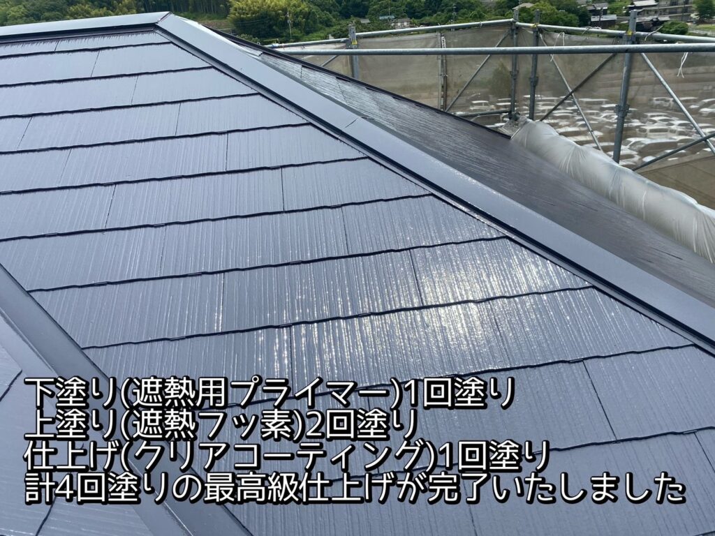 今回使用したのは、最高級のフッ素塗料。この塗料は天候に強く、色褪せしにくいという特性があります。そのため、まるで新築のような美しさが何年も続くのです。屋根が太陽に輝き続け、周囲の家々が嫉妬するほどの美しさを誇ること間違いなしです。