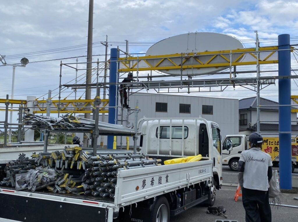 私(共栄塗装店代表の橋本です)の同級生が経営しておられる自動車販売店様にて、鉄骨塗装のご依頼をいただきました。
