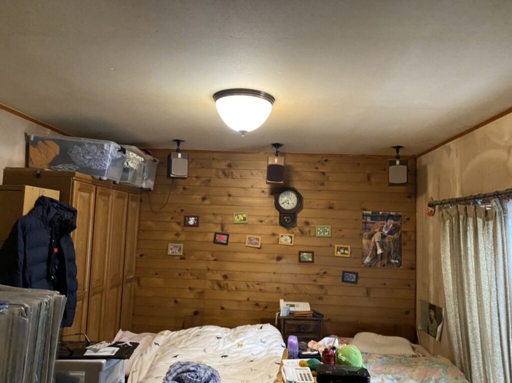 経年によりシミや変色の目立つ室内壁、天井の塗り替えのご依頼をいただきました。