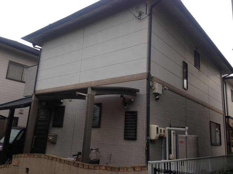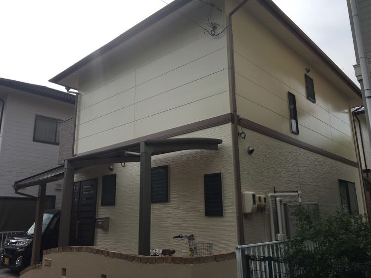 実際に外壁へ5色を試し塗りしてのお色選び、当店ならではの色選びサポートで満足いただいた屋根・外壁リフォーム